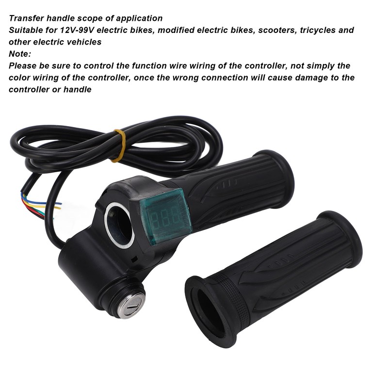 1、Heat Dissipation Housing: The controller housing is made of premium metal with grooves to guard the internal circuit from thermal overload due to excellent heat dissipation. 2、Safe and Reliable: The voltage is 36V, the rated power is 350W, and the performance is stable and reliable. It has protection functions such as undervoltage protection, overcurrent protection, stall protection, etc. to ensure safe use. 3、Stable Performance: Brushed motor controller can provide stable speed and sensitive control of braking and direction changes. 4、Universal Transfer Handle: Electric bike handle is suitable for lithium battery, water battery, dry battery and other batteries. 5、Widely Used: Electric bike handle is suitable for 12V‑99V electric bike, modified electric bike, scooter, tricycle, etc. 6、Cautions: Please be sure to control the function wire wiring of the controller, not simply the color wiring of the controller, once the wrong connection will cause damage to the controller or handle.