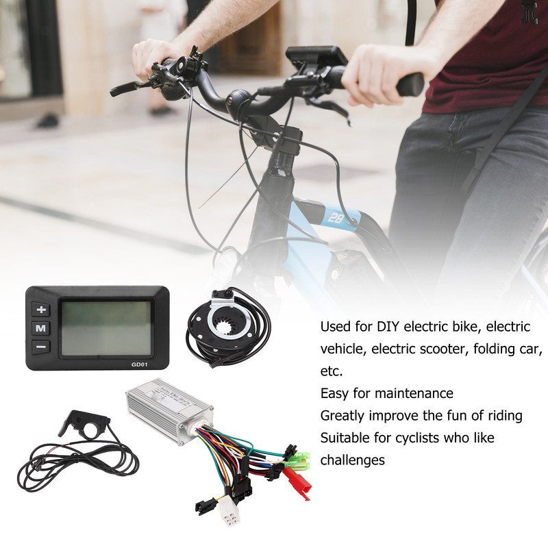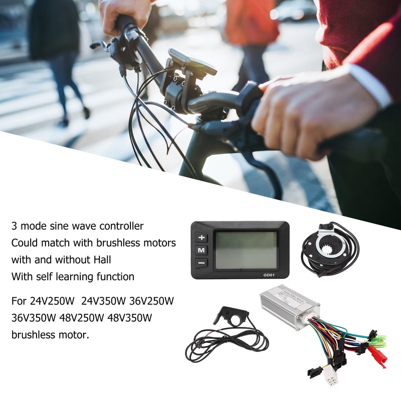 1、Applicable Models: This controller is suitable for 24V250W 24V350W 36V250W 36V350W 48V250W 48V350W brushless motor. 2、Sine Wave Controller: The controller is a sine wave three mode controller, matched with brushless motor with self learning function. 3、Groove Design: The shell of the motor controller is designed with grooves to ensure effective heat dissipation and avoid thermal overload. 4、LCD Meter: The LCD meter is made of ABS material, which is lightweight while strong. Possesses waterproof and toughness that it can well defend the internal circuits. 5、Scope of Application: This motor controller kit is suitable for electric bikes, electric vehicles, electric scooters, folding bikes, etc.