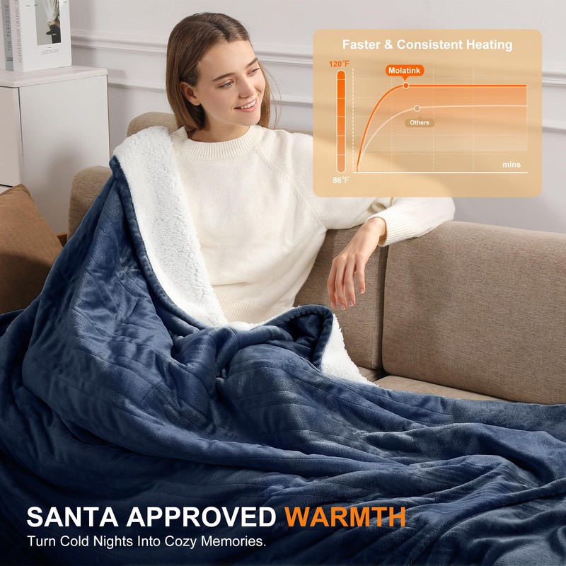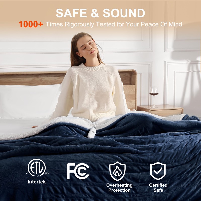 - Rapid and Customizable Heating: Equipped with advanced heating technology, this electric blanket quickly warms up, delivering instant relief from the cold. 5 heat settings allow you to easily adjust the temperature according to your preference, be it a gentle warmth for a relaxing evening or a toasty heat on extremely cold days. It's an ideal heating blanket for customized comfort.