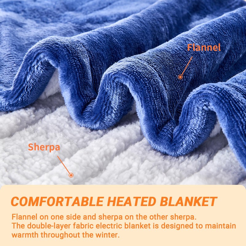 - PREMIUM MATERIAL & MACHINE WASHABLE - Our Electric throw blanket is made of 220gsm flannel + 200gsm sherpa. This fabric is very soft, thicker and warmer than normal blankets even without electricity. Durable and does not shed. The diameter of the heating wire is 2.2 mm, and the existence of the heating wire is hardly felt during use, which is more comfortable.