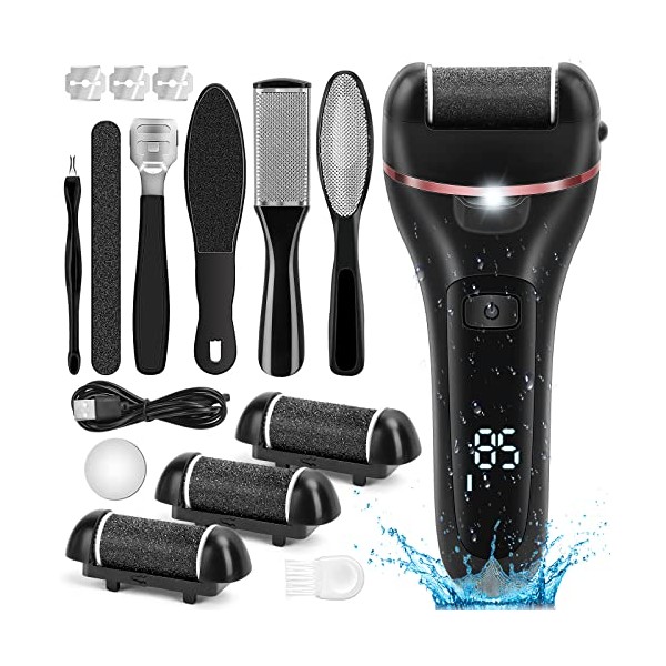 Electric Callus Remover for Feet, 2 Speed Electric Foot File, Rechargeable Foot Scrubber Pedicure kit for Cracked Heels and Dead Skin with 3 Roller Heads.