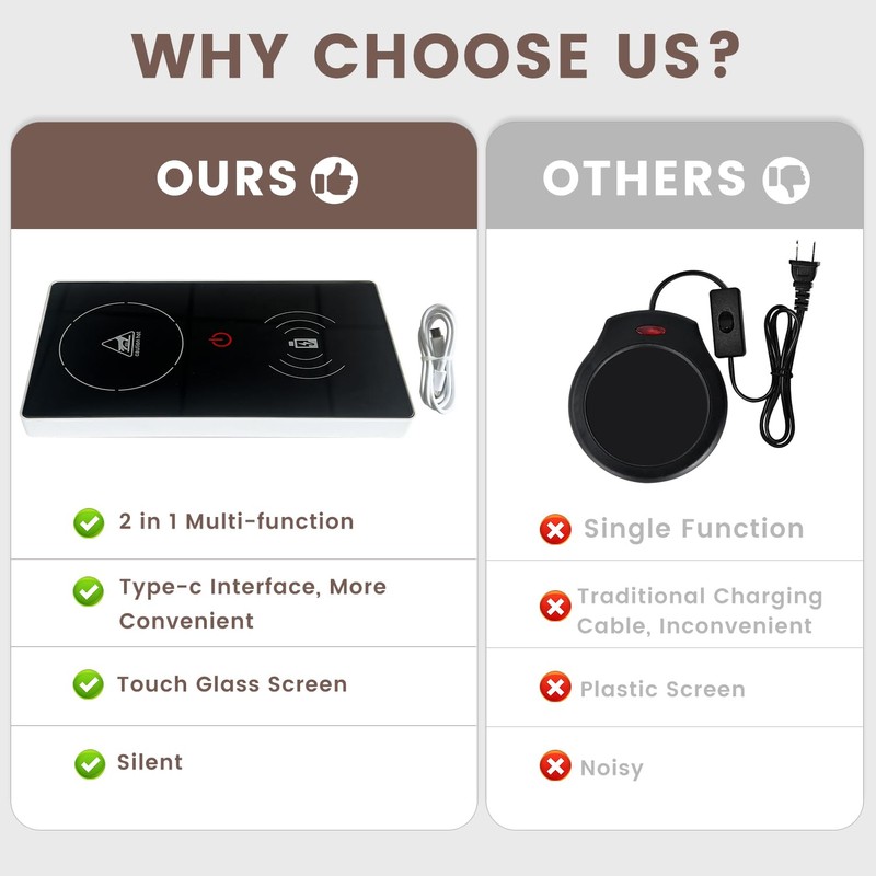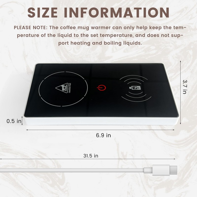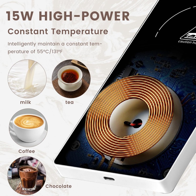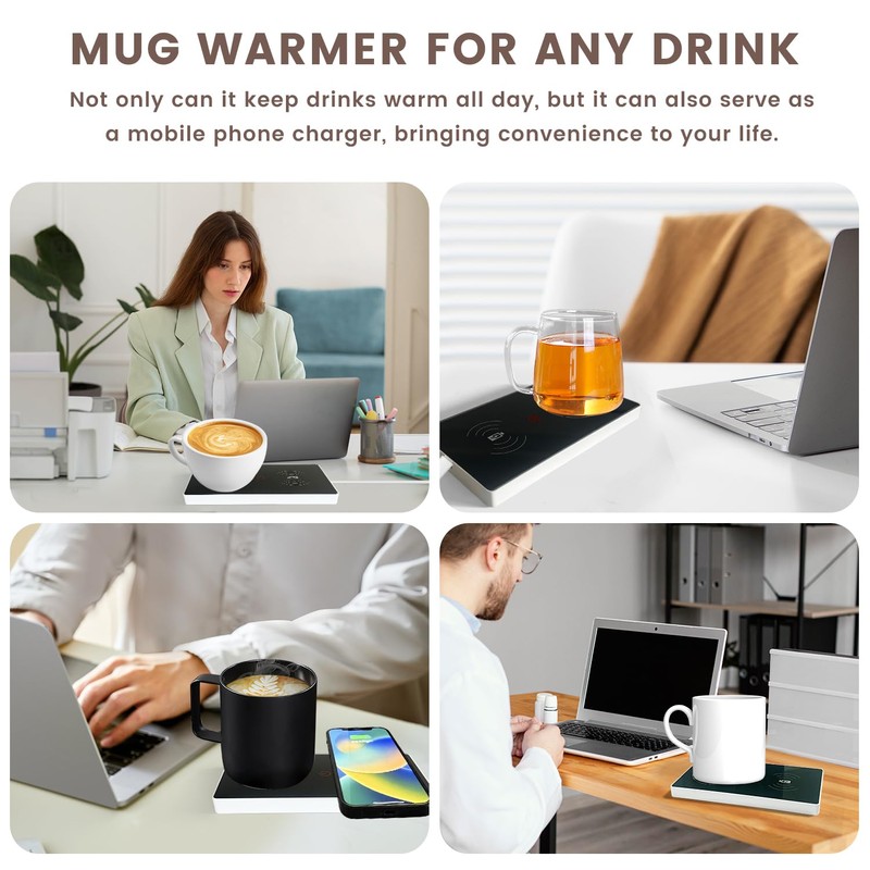 • 2 IN 1 COFFEE CUP WARMER: multifunctional design, there are two functions: wireless charger and water heater. The drink warmers not only keep coffee, milk and tea warm, but can also charge your smartphone wirelessly. Please note that the cup warmer is only used to maintain the temperature of the drink, but not to heat it. The charging and warming functions cannot be used at the same time, for the function selection there is a conversion button.