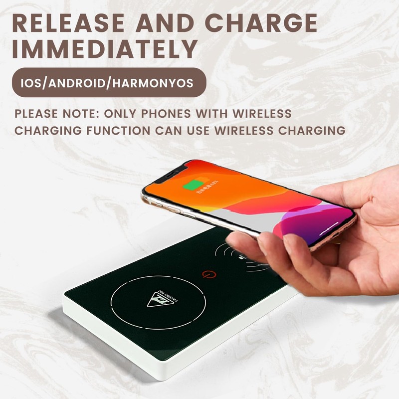 • Wireless inductive charging: wireless charger for mobile phones, say goodbye to the interference caused by double coils. When the phone is fully charged, it will automatically shut off, preventing the battery from overcharging. The mobile phone can be charged normally even when the mobile phone case is installed. The inductive charging distance is 5 mm. It is recommended that the thickness of the phone case does not exceed 5 mm
