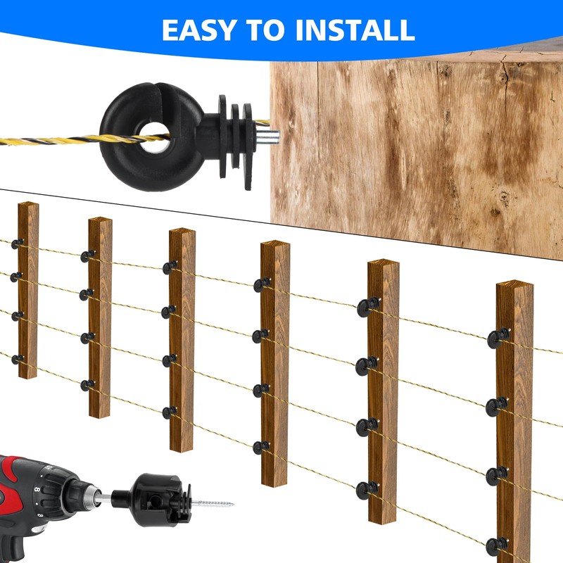 - 【EASY TO INSTALL】- Insulator can be easily screwed into the wooden fence by hand. Comes with an insulator socket tool, can be used to connect the insulators and electric drill directly, more labor saving and efficiency.