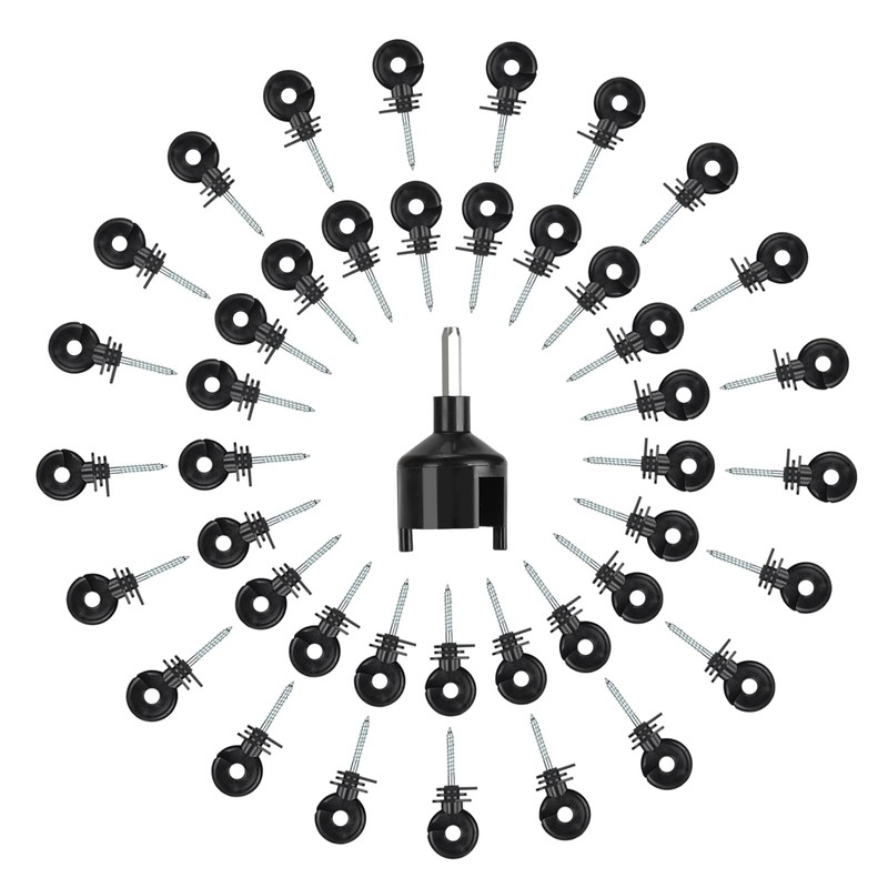 Electric Fence Insulators with Socket Tool, 50 PCS Screw in Ring Insulator for Fence Wood Post, Compatible with Electric Polywire or Steel and Aluminum Wire - Black