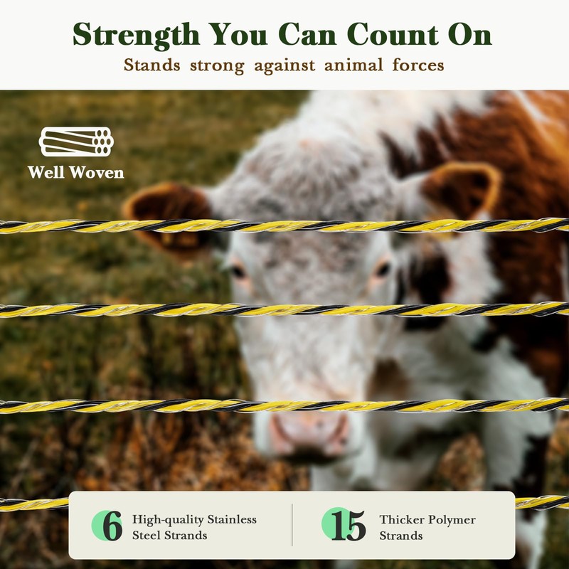Aclastool Electric Fence Wire, 3500ft 1067m, Polywire for Portable Livestock Fencing, 6 Stainless Steel Strands for Reliable Conductivity and Rust Resistance, UV Resistant