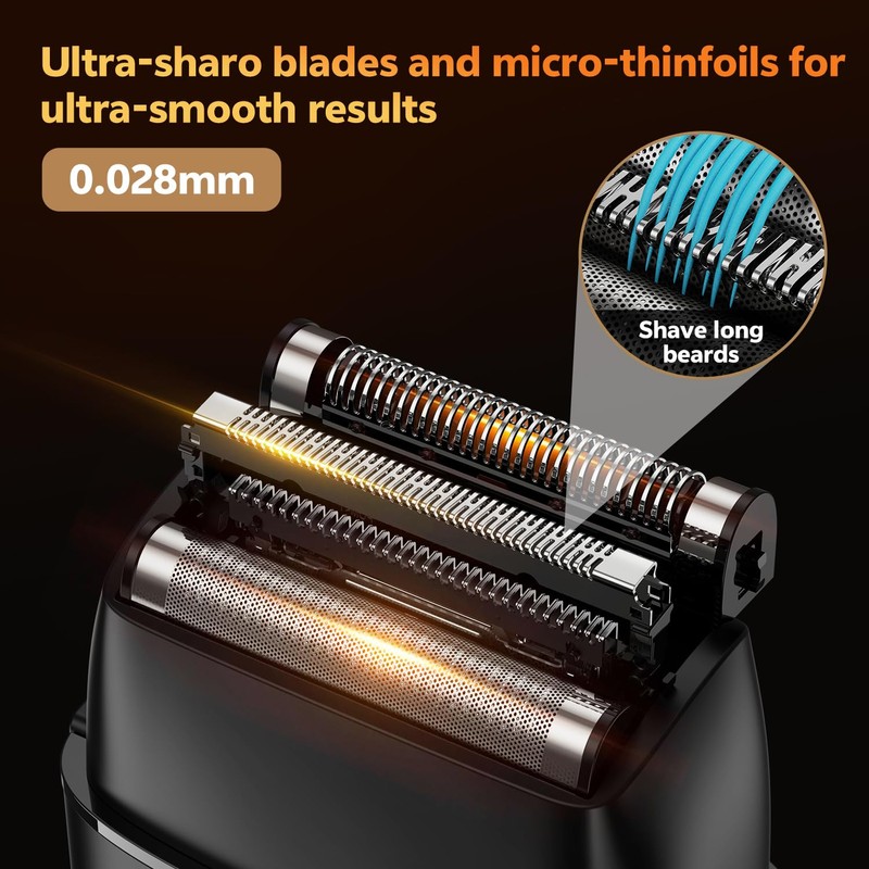 - Powerful & Efficient Shaving: Equipped with an upgraded high-speed motor running at 8,500 RPM, this men's foil shaver performs up to 20,000 cutting actions per second. It enhances shaving speed, comfort, and efficiency—effortlessly tackling even the most stubborn facial hair for a closer, cleaner result.