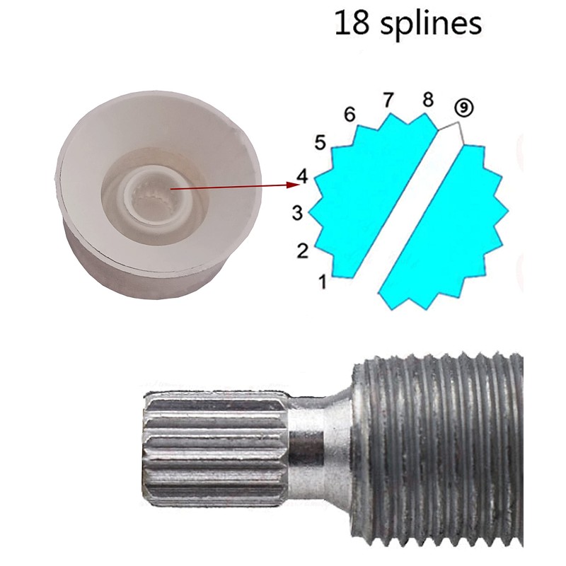 - Height: 12.5mm/ 0.49"; Top diameter: 23.6mm/ 0.93"; Base diameter: 26mm/ 1.02";Spline shaft: 6mm.