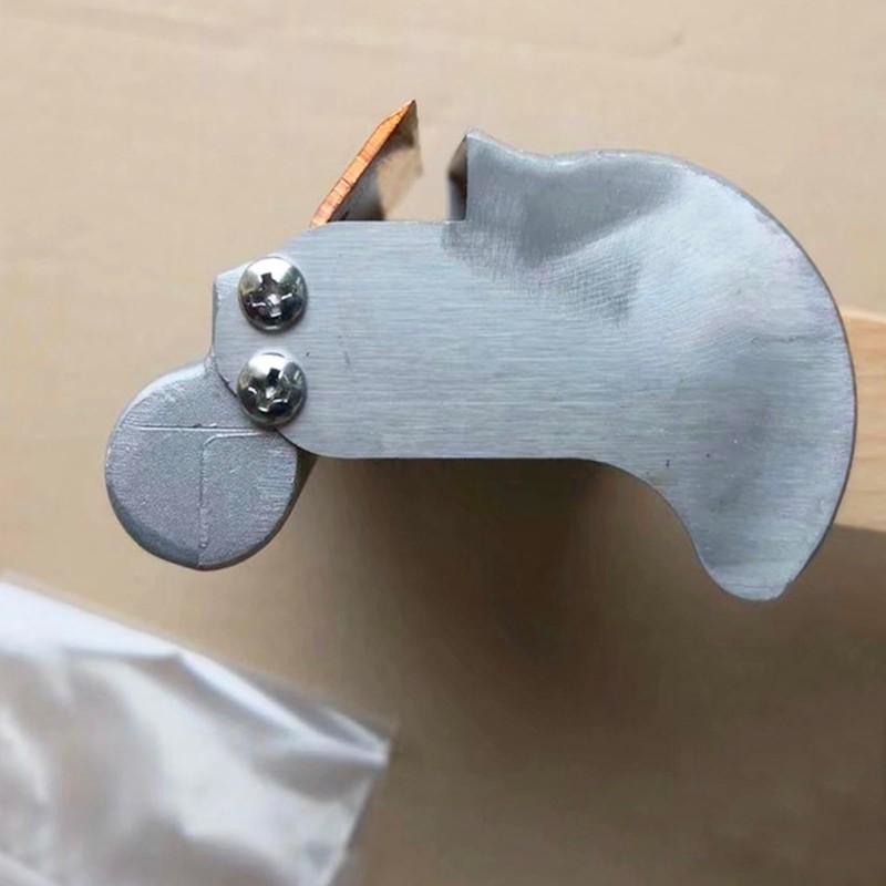 The honey cutter is equipped with a polished stainless steel blade and sanded connecting rods