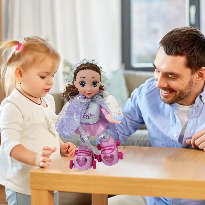 Electric Ice Skates Doll for Kids Cute Princess Ice Skates Doll Toy with Music and Lights Birthday New Year Gift for Baby Girls