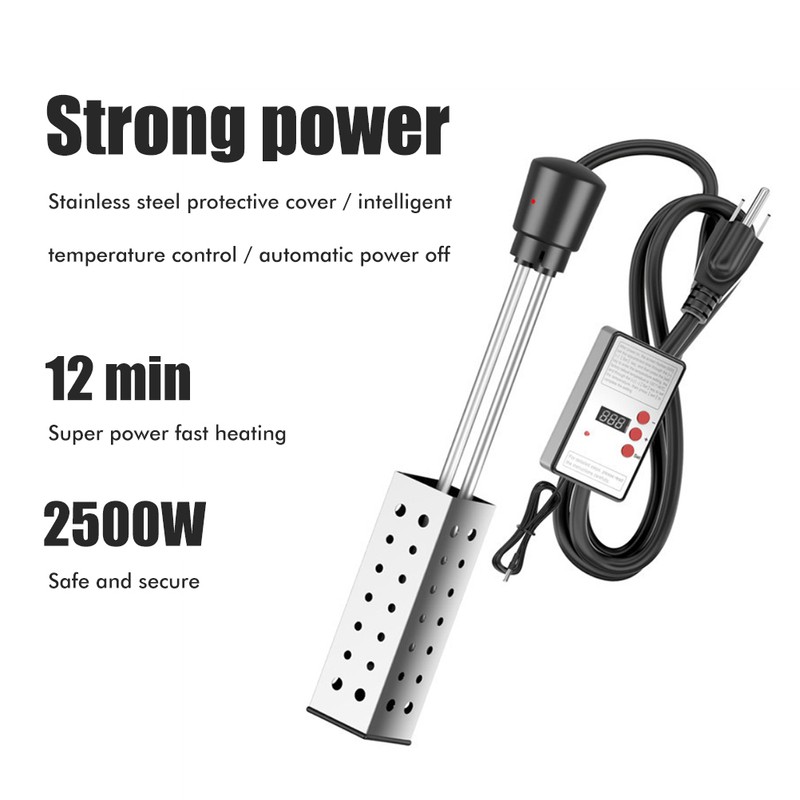 Electric Immersion Heater Bucket Water Heater Household High Power Submersible Pool Bathtub Heater with Thermostat Auto Shutoff
