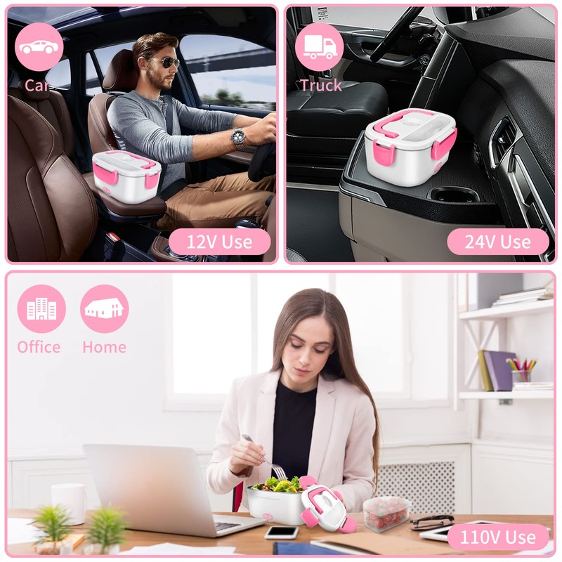 - 【3 IN 1 Car/Truck/Home Use】It's not only a lunch box, but also a heating box. Yes, our portable electric lunch box supports 110V home/office and 12V/24V car/truck use. Thus you can warm your meals wherever you are. Perfect for truck drivers who have to drive for a long time on the road. You deserve our electric heated lunch box to make your life better.