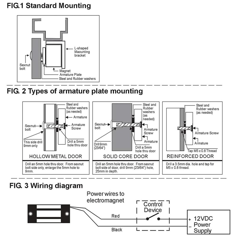 - Fail-Safe NC Mode: Operating on a 12V DC power source, this electromagnetic lock is configured in a Fail-Safe Normally Closed (NC) mode. In case of power failure, the lock defaults to the locked position, ensuring security continuity.