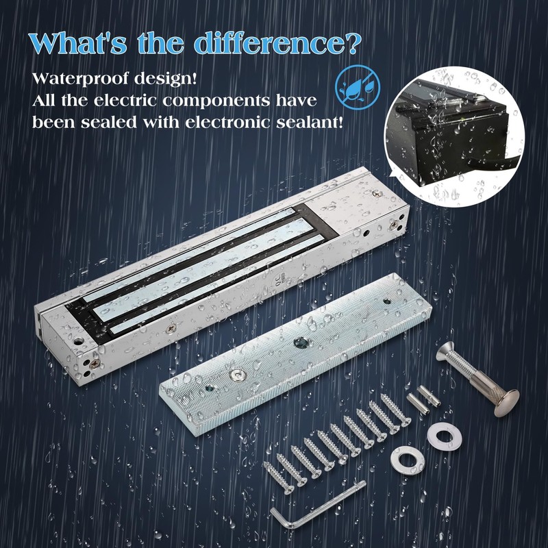 Electric Magnetic Door Lock - 180KG/350lb Holding Force Waterproof Electromagnet Lock, 12V DC Fail-Safe NC Mode, Suitable for Indoor and Outdoor Access Control Systems