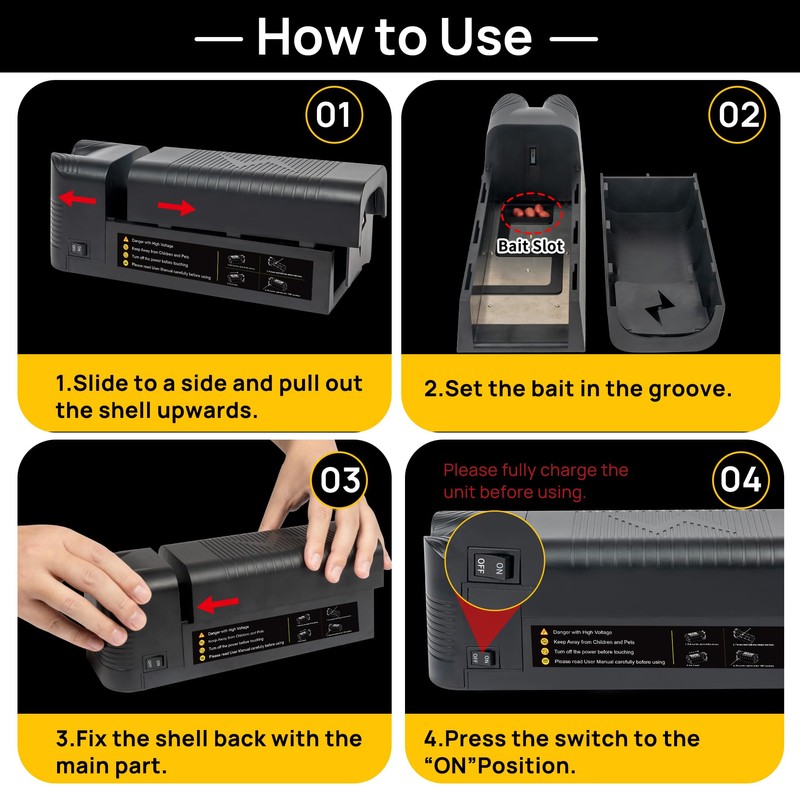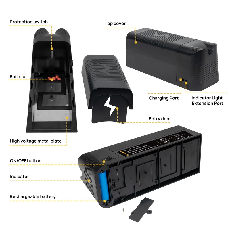 Electric Mouse Trap Mice Zapper Rat Killer with High Voltage Instant Eliminate Rodent Indoor for Kitchen Living Room