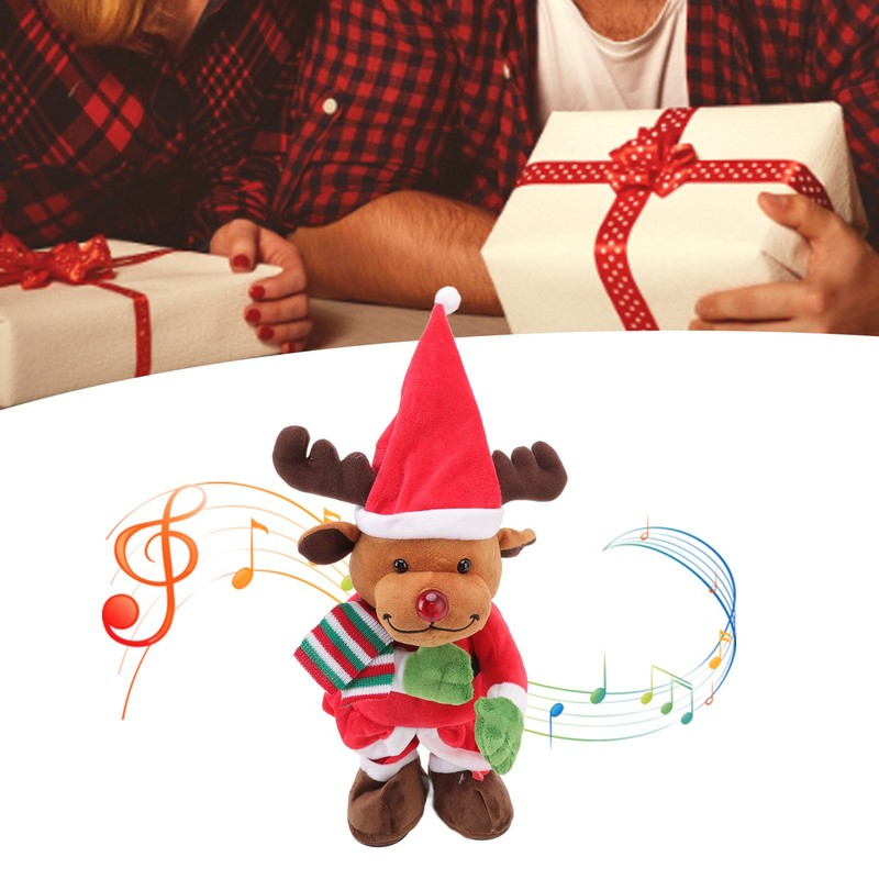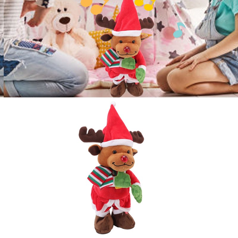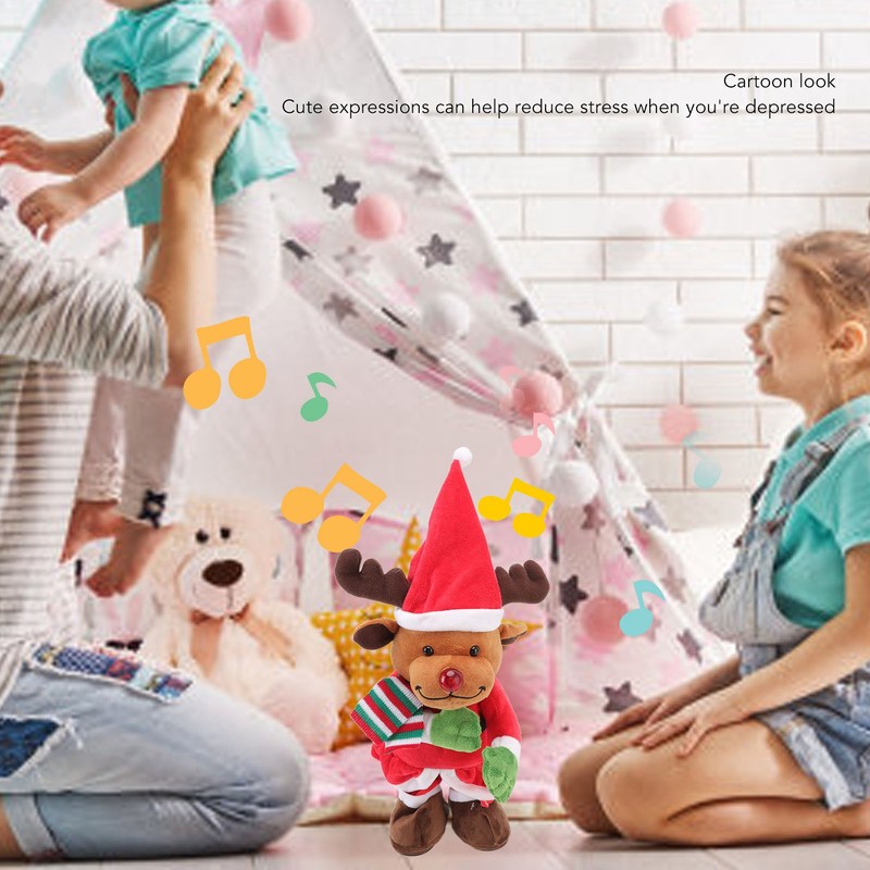 Electric Music Xmas Toy Doll Dancing Singing Glowing Swinging Plush Toy for Kids Adults Xmas Elk