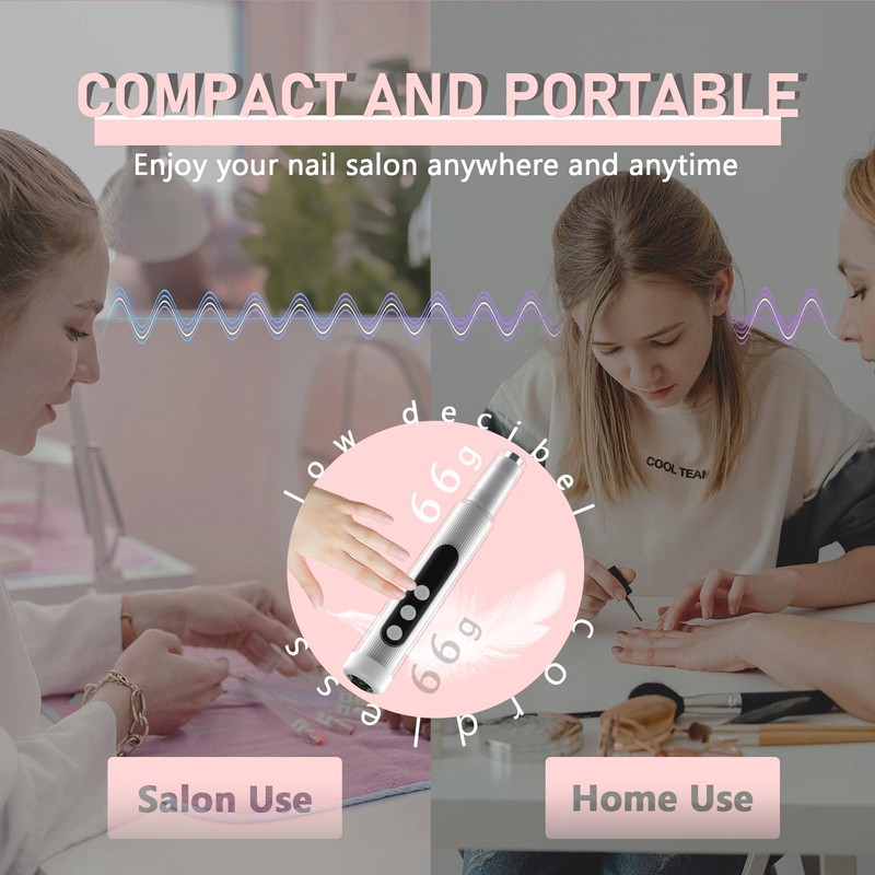 - LOW NOISE, LOW HEAT: The electric nail buffer is made of high quality material, ergonomic design, easy to hold, built-in powerful and quiet motor with smart heat dissipation function, durable and safe to use. Low noise, low heat and low vibration when using, give you a comfortable nail art experience, if you encounter any problems when using the nail drill kit, please contact us, we will solve it for you at the first time