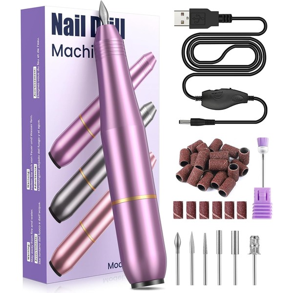 Electric Nail Drill Machine – 20,000 RPM Adjustable Speed Professional Nail File with 6 Drill Bits, Low Noise & Vibration, Manicure & Pedicure Set for Gel and Acrylic Nails, Ideal for Beginners