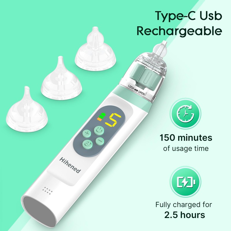 - USB Rechargeable, The electric nose aspirator for babies is rechargeable and portable, providing 150 minutes of use after being fully charged. This nose sucker for toddlers comes with a storage box, allowing you to use it at any time or take it out anywhere.Baby must haves for newborns.