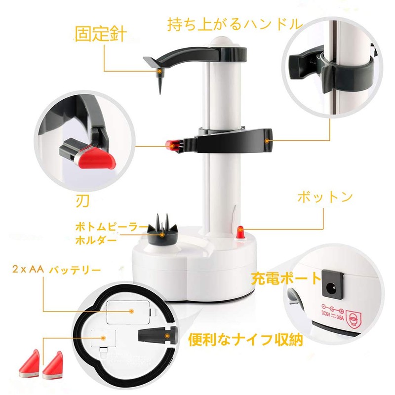 - Use for peeling fruits and vegetables. Tedious peeling takes a short time and removes peels cleanly without waste. Easily peels a variety of vegetables and fruits, so you can eat more opportunities for a healthy life