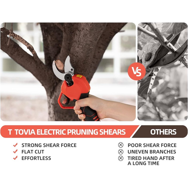- 【VERSATILE APPLICATIONS】T TOVIA electric pruning shears is designed for maximum efficiency in a wide variety of applications in gardens, parks, farms, orchards, greenhouses, and anywhere that a portable, light weight, self-contained purner is required.