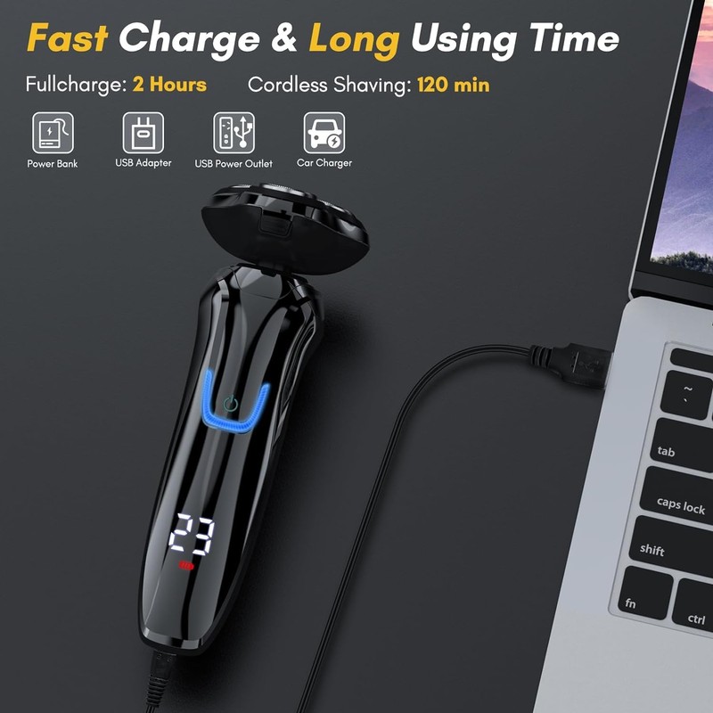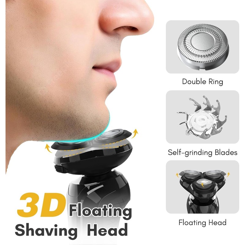 - Electric Razor for Men, JIAABCHOMO 3 in 1 Electric Shavers, IPX7 Waterproof Wet and Dry Shavers for Men, Cordless Rechargeable Rotary Shavers Sideburn Nose Trimmer with LCD Display, Black