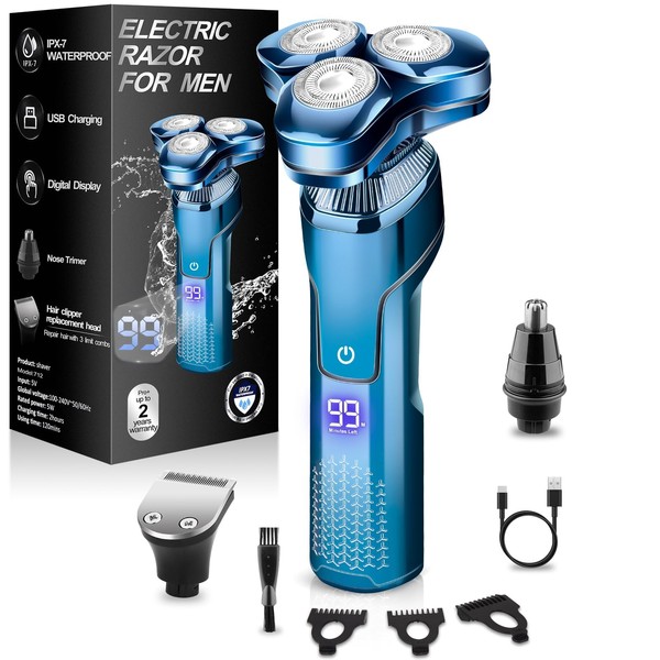 Electric Razor for Men,Men’s Electric Shavers Rotary LED Display Waterproof Rechargeable, Electric Shaver for Men Cordless Floating Head Replaceable Blades