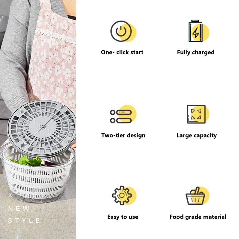 - Quick Electric Dehydration: Features USB fast charging, one-touch start, and automatic shutdown after 10 seconds of operation. Fully charged, it can be used over 100 times. Quickly dehydrates lettuce and fruits, freeing up your hands