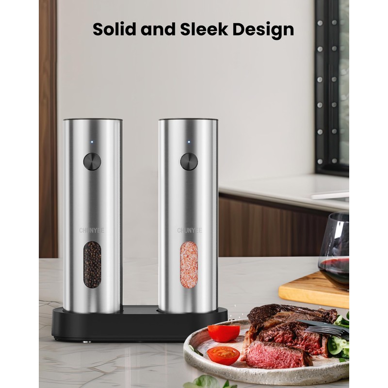 - Adjustable Grinding & Ceramic Core: Engineered with a premium ceramic grinder, the CHUNYEE automatic salt and pepper grinder set delivers unmatched flavor retention and bursts of intense aromas—transforming every grind into a sensory experience. Customizable coarseness for everything from fine seasoning to coarse BBQ rubs