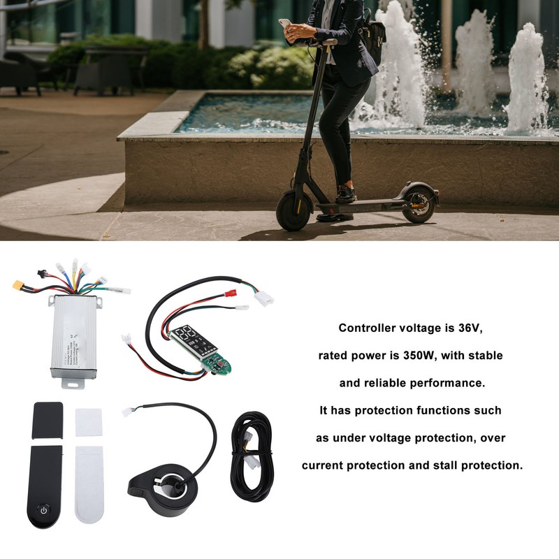 1、GOOD HEAT DISSIPATION: The controller case is made of metal material with grooves to protect the internal circuitry from overheating due to poor heat dissipation. 2、COMPLETE ACCESSORIES AND EASY TO REPLACE: The set includes controller, dashboard and other accessories, easy to replace and install to meet users' needs. 3、STABLE AND RELIABLE PERFORMANCE: The rated voltage of the controller is 36V and the rated power is 350W, which makes the performance stable and reliable. It is equipped with various protection functions such as under voltage protection, over current protection and stall protection, which guarantees the safe operation of the electric scooter. 4、STABLE SPEED CONTROL: The controller set can provide stable speed control with sensitive braking and direction change control. 5、WIDELY APPLICABLE: The controller set is suitable for Xiaomi M365, 1s, pro, pro2 imitation YFS and other electric scooters, with a wide range of applications.