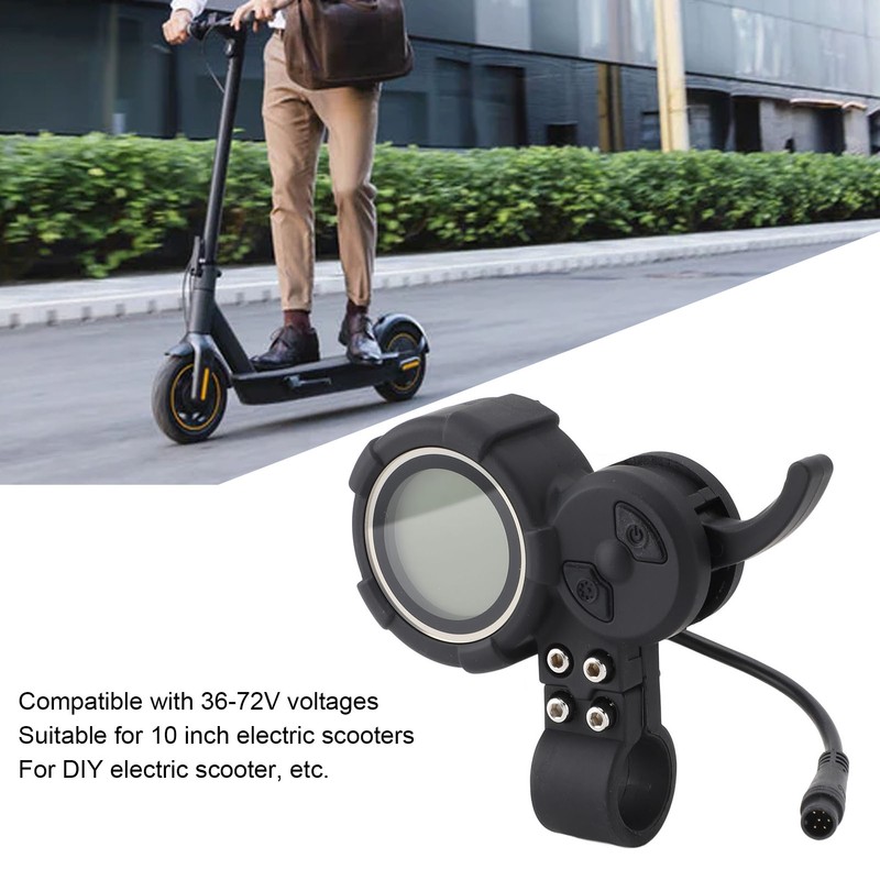 1、Compatibility: The electric scooter LCD display panel is suitable for 10 inch electric scooters, ensuring compatibility and seamless integration, bringing you a more comfortable riding experience. 2、Excellent Workmanship: The electric scooter display panel is made of ABS material, lightweight, sturdy, and durable, ensures good toughness and waterproof performance. 3、Easy to Install and Use: Note that the 6 pin waterproof connector can be connected to the controller to achieve the display function. This LCD panel can be installed and disassembled quickly and effortlessly. 4、LCD Display: Easily understand the basic status of the electric scooter, including speed, gear, power, mode, indicator light, etc. It allows you to quickly make effective and timely adjustments to abnormalities. 5、Great Accessory: It is perfect modification accessories for electric scooters, etc. Very practical and easy to use. This LCD display makes it easier for you to view the data on the panel, and the status is displayed on the large screen more intuitively.