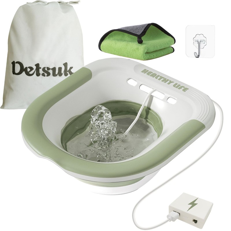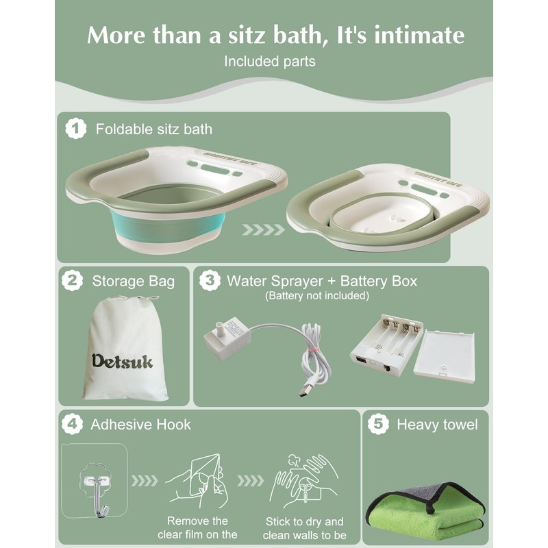 - 📦【All-in-One Care Kit with Bag, Hook & Towel】 Includes a premium storage bag for travel, a soft cotton towel, and a wall hook for convenient hanging. Your complete sitz bath kit for home or hospital use – all essentials in one box.
