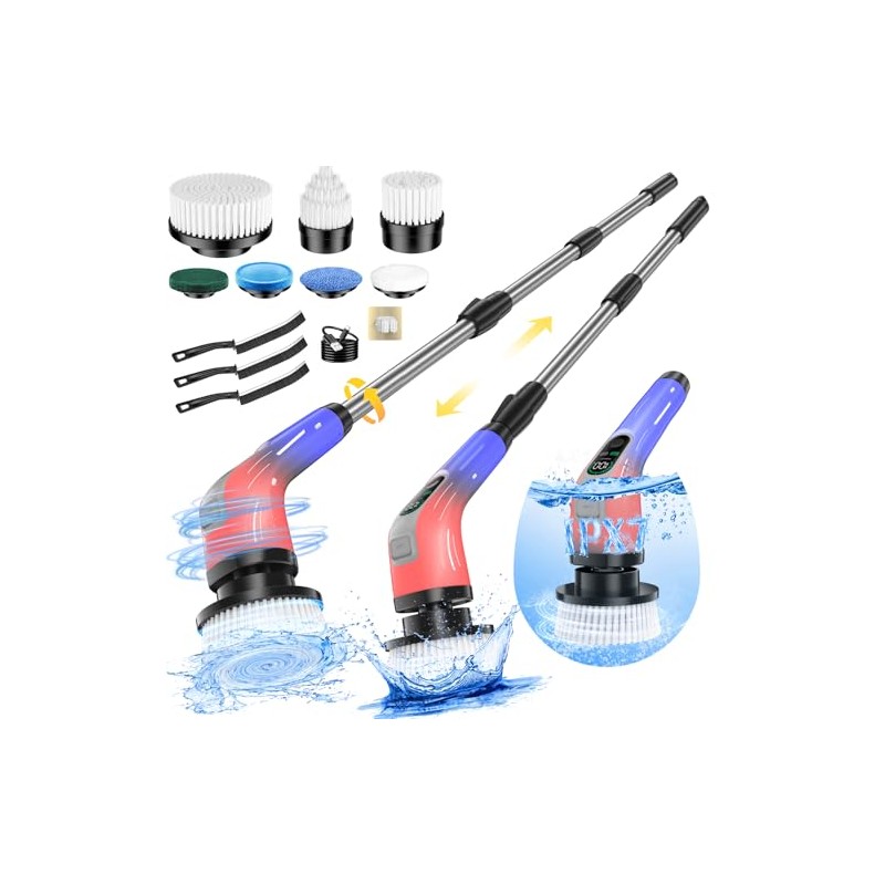Electric Spin Scrubber, Shower Scrubber with Extension Handle for Kitchen Brown