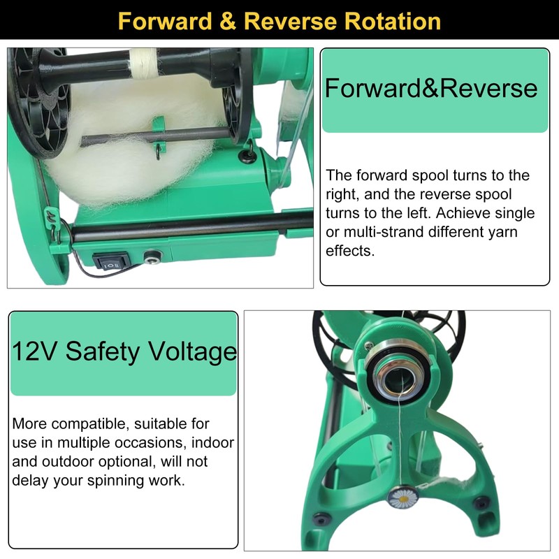 - 【FORWARD AND REVERSE ROTATION】 - The first gear of the electric yarn winder is Z-twisted single strand, and the second gear is S-twisted ply, which can better meet your various spinning needs. The modular design is more conducive to disassembly and maintenance. At the same time, it uses 12V voltage and can also be used outdoors, making it easy to spin anytime and anywhere