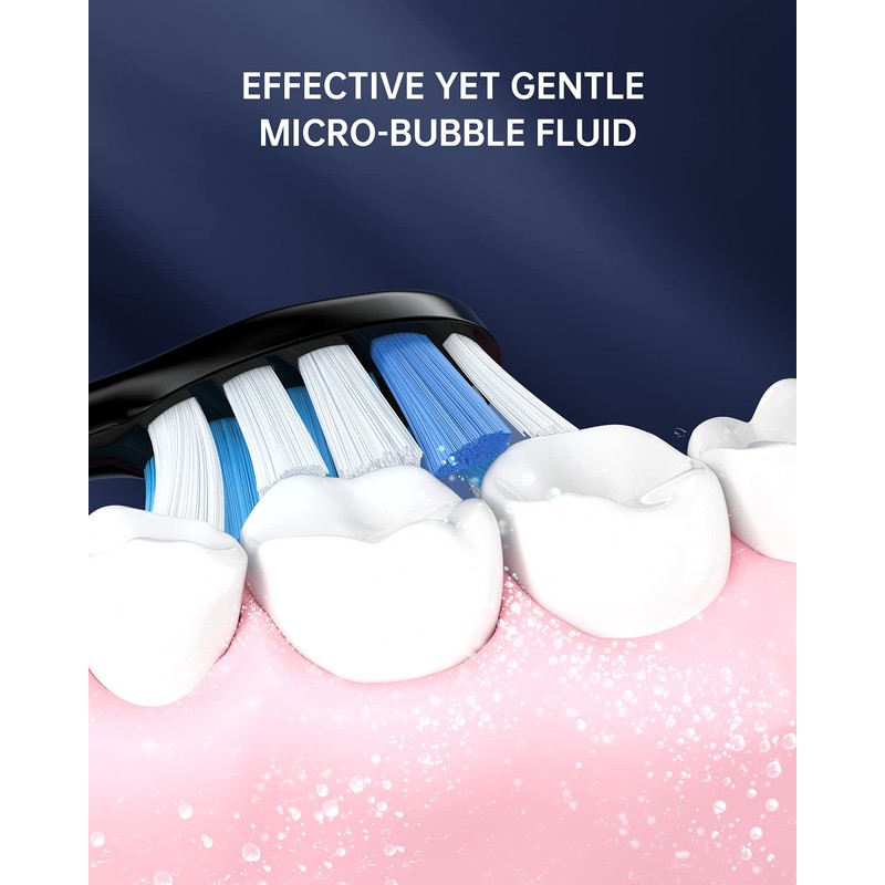 - 【4 DuPont Brush Heads & 1 Travel Case】 - Brush heads with W shaped 3D bristle makes it better fit our tooth shape and make clean effect more thoroughly and effectively. Reminder Bristle would fade in color to let you know when it is time to replace the brush heads. Also included is a travel case that houses two brush heads which is ideal for traveling.