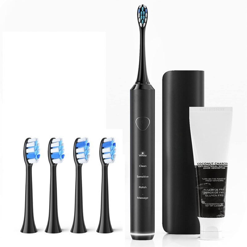 Electric Toothbrush , 5 Modes Sonic Toothbrush Set for Adults with Whitening Toothpaste , Rechargeable Toothbrush 2H Fast Charge for 30 Days Used with 2 Min Smart Timer , 1 Travel Case 4 Brushhead