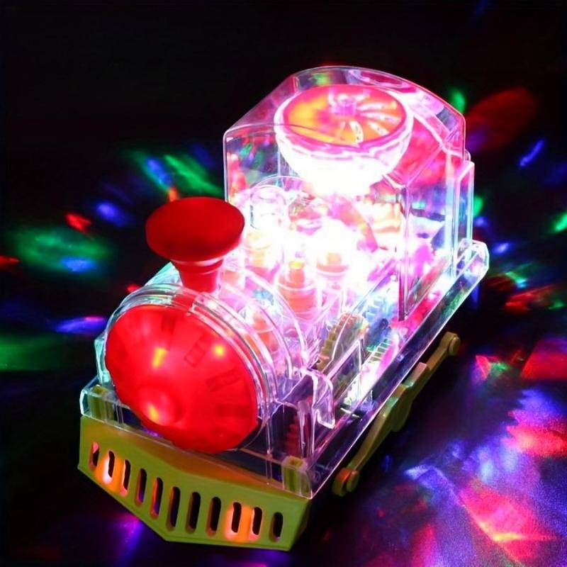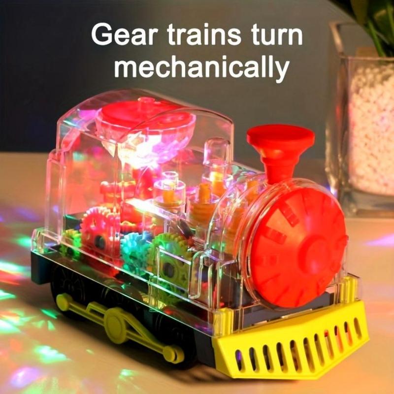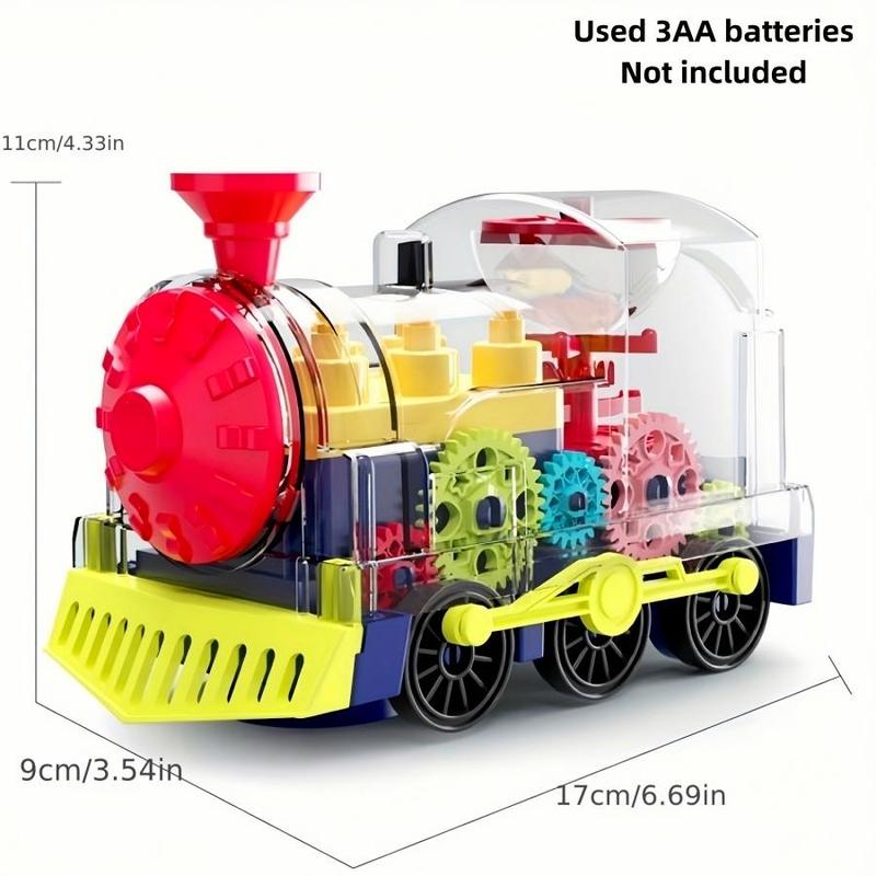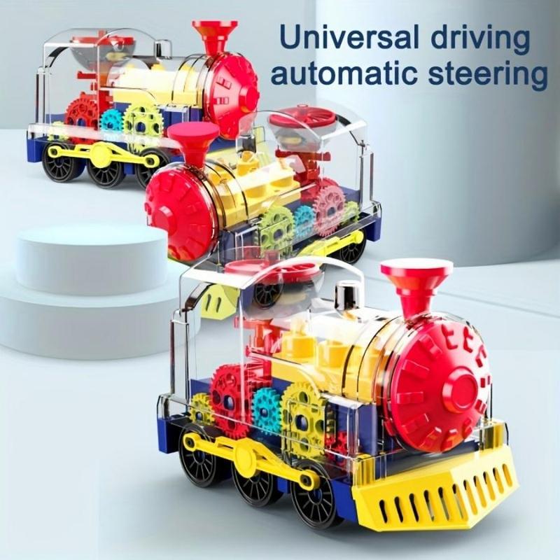 Electric Train Toy, Random Color Electric Train Toy with Music & Lighting, Automatic Turning Train Toy, Birthday Gift, Gear Parts Color Random, Christmas Stocking Filler