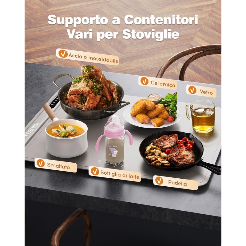 4. Powerful Heating: No more waiting – our warming tray heats up in just 8 seconds, ensuring your dishes stay warm and inviting.