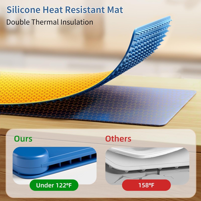 - Double Thermal Insulation: Add a silicone protective pad and thicken the food heating pad. Effectively reduces table temperature, prevents the countertop damage from overheating