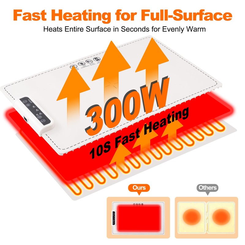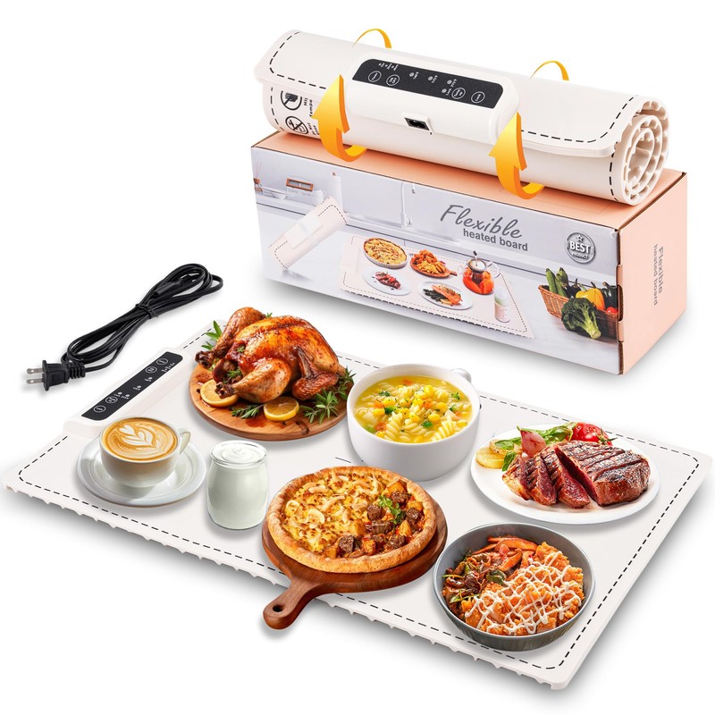 - Easy Storage: This fast full surface Heating Food Warmer features a foldable design, saving storage space and eliminating concerns about unsightly wrinkles. It's equipped with silicone feet for enhanced heat dissipation, protecting the tabletop from heat damage. It can be rolled up, comes with a strap and bag for easy storage, and is a great helper for buffets, picnics and more.