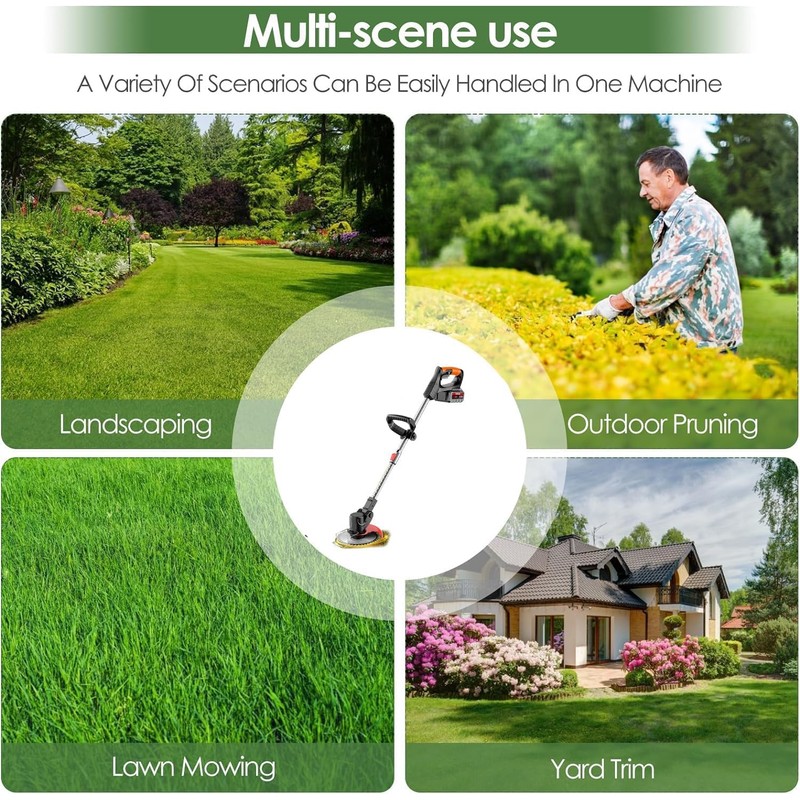 - 🎁【Exceptional Customer Support】You'll receive 1x weed whacker, 2x Battery, 1x Charger, 2x Saw Blade, 2x Metal Blade, 2x S Metal Blade, 10x Weed String, 10x Plastic blades, 1x Gloves,1 x Safety goggles,1x User manual, If you have any questions, please contact us!
