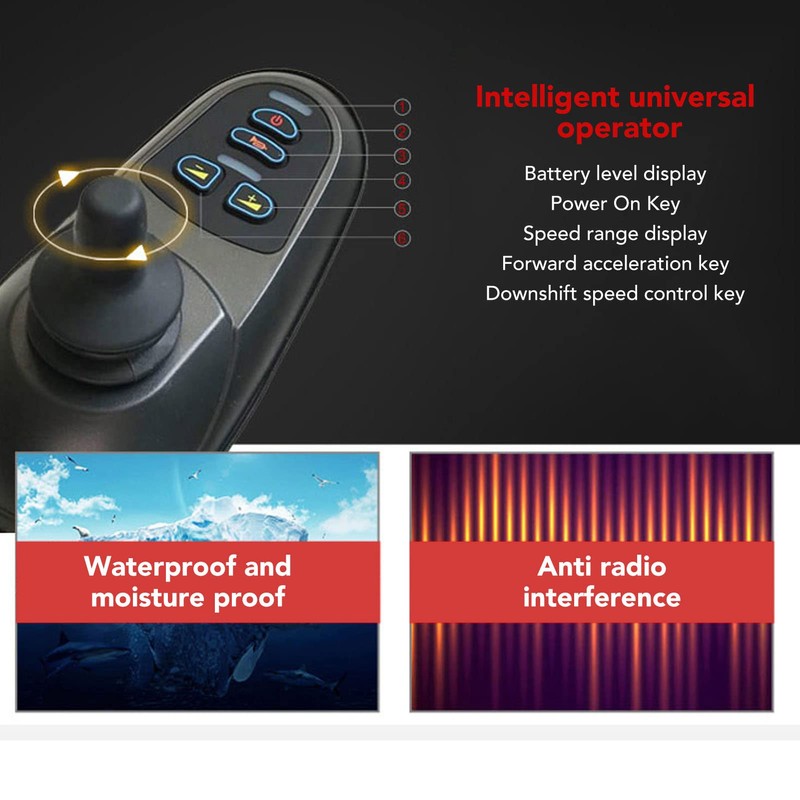 - ADVANCED CONTROL ALGORITHM: The wheelchair control joystick adopts an advanced control algorithm and AI intelligent control system that allows for smoothly acceleration and deceleration, with great speed variation without a sudden stop feeling.
