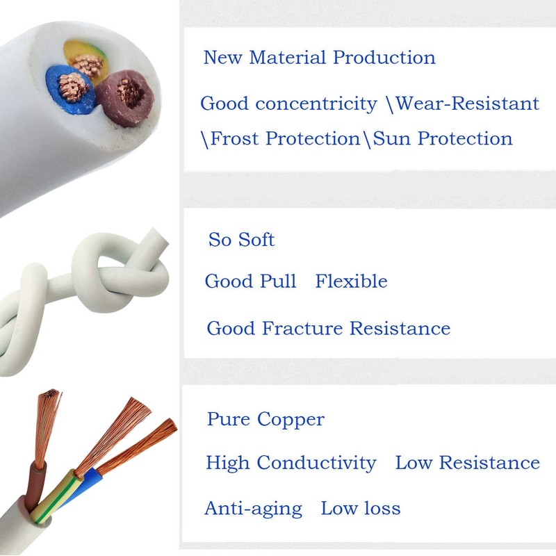 - Copper conduction material,cross section: 3 x 0.75 mm²,copper wire has small internal resistance and very good conductivity