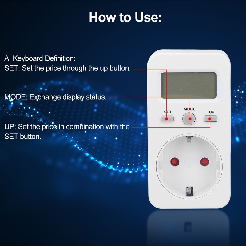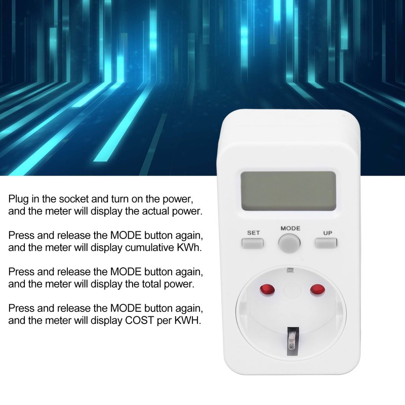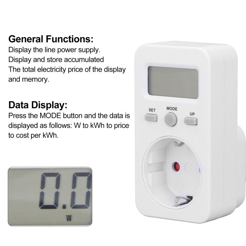 1、Energy Monitor: Able to better monitor the electricity usage on the socket, this home power meter will help you reduce energy consumption. 2、Overload Alarm: When the current exceeds 16A or the power exceeds 3680W, the overload alarm icon will flash for alarming, very reliable. 3、Better Display: Equipped with LCD display, the digital energy monitor enables clear viewing and easy reading for safe and simple operation. 4、Great Accuracy: When the detected power value is less than 1.0W, it is considered as local power consumption and does not accumulate time. 5、Easy to Install: Comes with a compact size and a light weight as well, the electricity monitor is very convenient to install in minutes.
