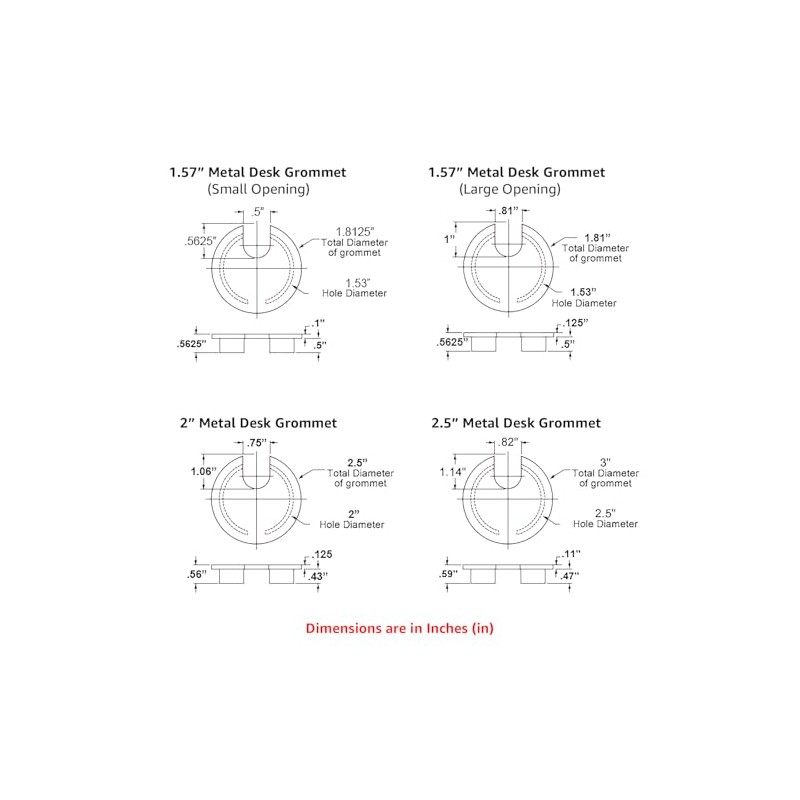 - READ ALL DIMENSIONS! - Desk hole diameter required of 1.57" (40mm) | Top Part / Overall Lid Diameter 1.825" | Inner opening of 0.5"