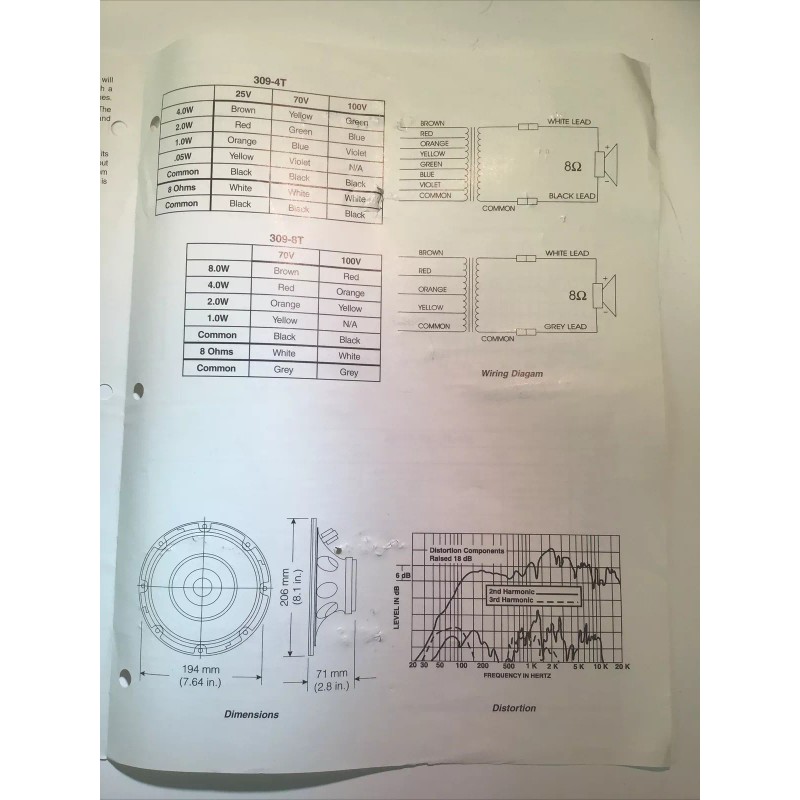 Electro-Voice NOS Electro-Voice 309-8T - 8" Standard Ceiling Speaker 1w 2w 4w 8w 70.7v TM-8