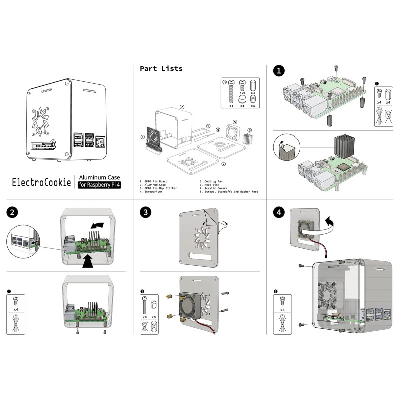 Electrocookie Raspberry Pi 4 Case, Aluminum Mini Tower Case With Cooli