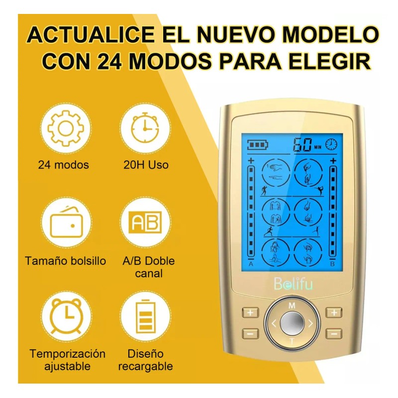 Electroestimulador Muscular Tens Ems Recargable 24 Modos