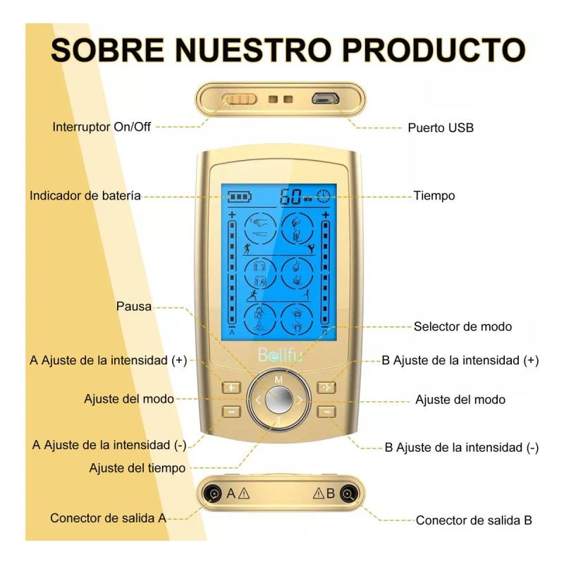 Este masajeador tiene 24 modos y 20 niveles de intensidad, puedes ajustar el modo y la intensidad del canal A/B como quieras según las necesidades de tu cuerpo.