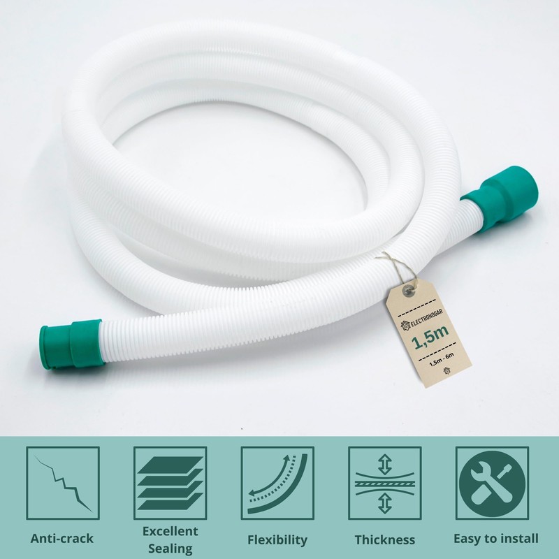 ELECTROHOGAR Kit Drain Hose Extension for Washing Machine, 1.5 m, Includes Hose Connectors, Clamps and Drain Pipe Holder, Waste Water Hose Compatible with All Brands: LG, Bosch, AEG, Siemens